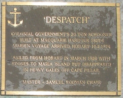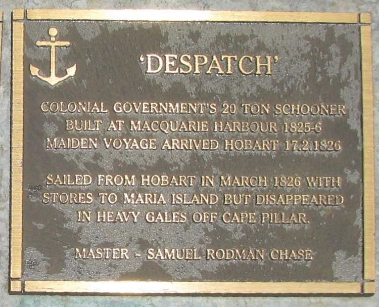 The 'Despatch' was a 20 ton schooner built at Macquarie Harbour