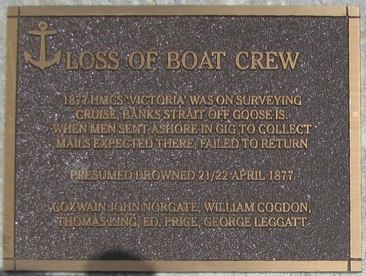 In 1877, HMCS Victoria was on a surveying voyage in Banks Strait